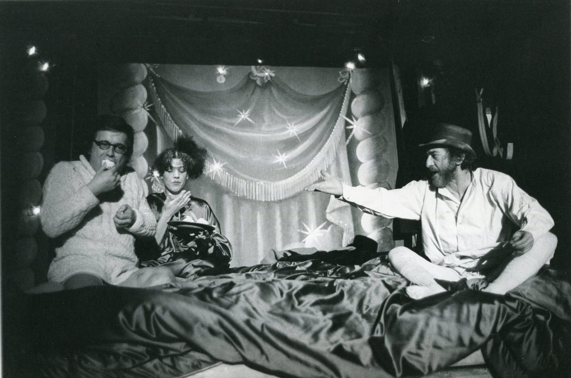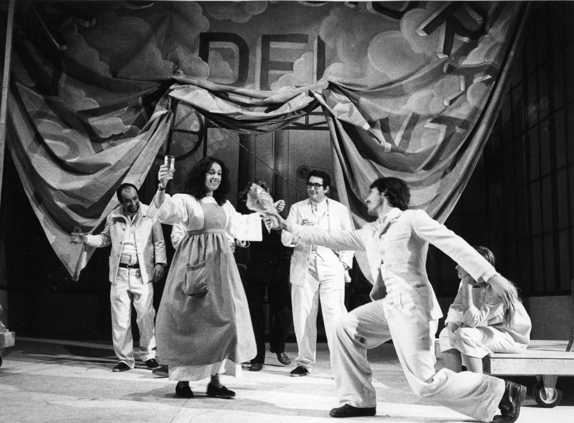 Se la ricerca dei precedenti spettacoli era stata principalmente improntata al tema della crisi della borghesia, vista all’interno della borghesia stessa, cioè il filone di un certo pessimismo, un campanello d’allarme in un contesto cultural-teatrale gonfio di incertezze e di trionfalismi, la necessità che abbiamo sentito a questo punto è stata di trasferire la ricerca dentro momenti e periodi più ricchi del fermento che sentivamo dentro di noi. Ci siamo interessati di temi che riguardassero il post-rivoluzione. Abbiamo accarezzato a lungo l’idea di rappresentare La Morte di Danton di Buchner, abbandonando poi il progetto per troppe difficoltà materiali. Ci siamo soffermati sul periodo – ancora inesplorato — che va dalla rivoluzione sovietica all’avvento dello stalinismo. Ecco apparire Babel, ecco il romanzo Invidia di cui Parenti sapeva esistere un rifacimento teatrale. Milly Martinelli é riuscita a procurarselo e ce le ha tradotto. Ne abbiamo parlato con Ettore Capriolo che possedeva la versione inglese. Abbiamo lavorato per restituire la freschezza, la forza poetica, l’originalità fantastica con cui Oleša tratta gli argomenti che ci interessavano. Come tutti i testi che si decide di mettere in scena, La congiura dei sentimenti ci appare oggi necessario, utile, stimolante, importante da rappresentare.