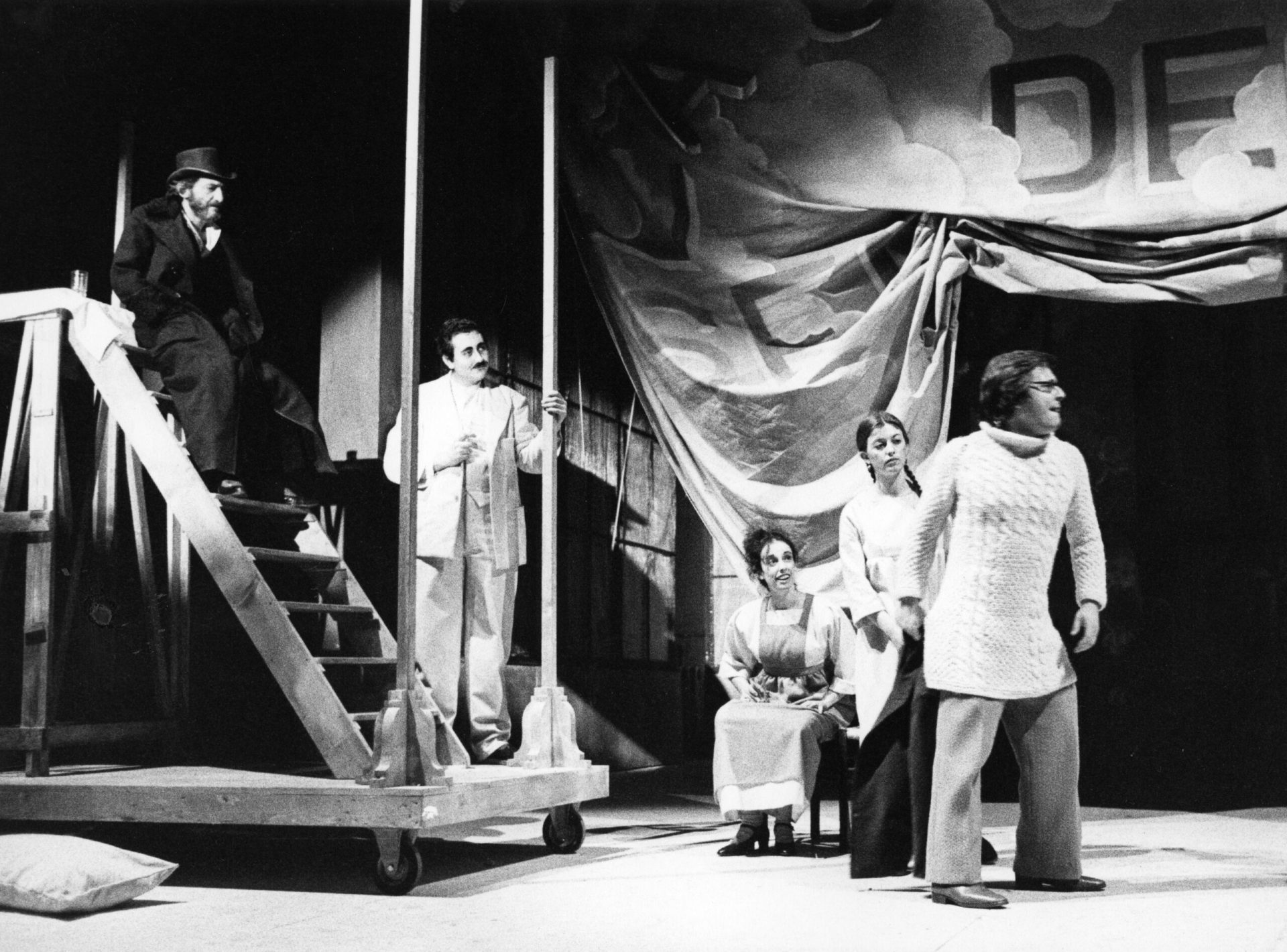 Il pregio di una regia in cui realismo e fantasia, verità e sogno, si fondono in un prezioso e pungente tessuto scenico che gli elementi mobili e i costumi di Gianmaurizio Fercioni servono alla perfezione, così come le musiche di Fiorenzo Capri.