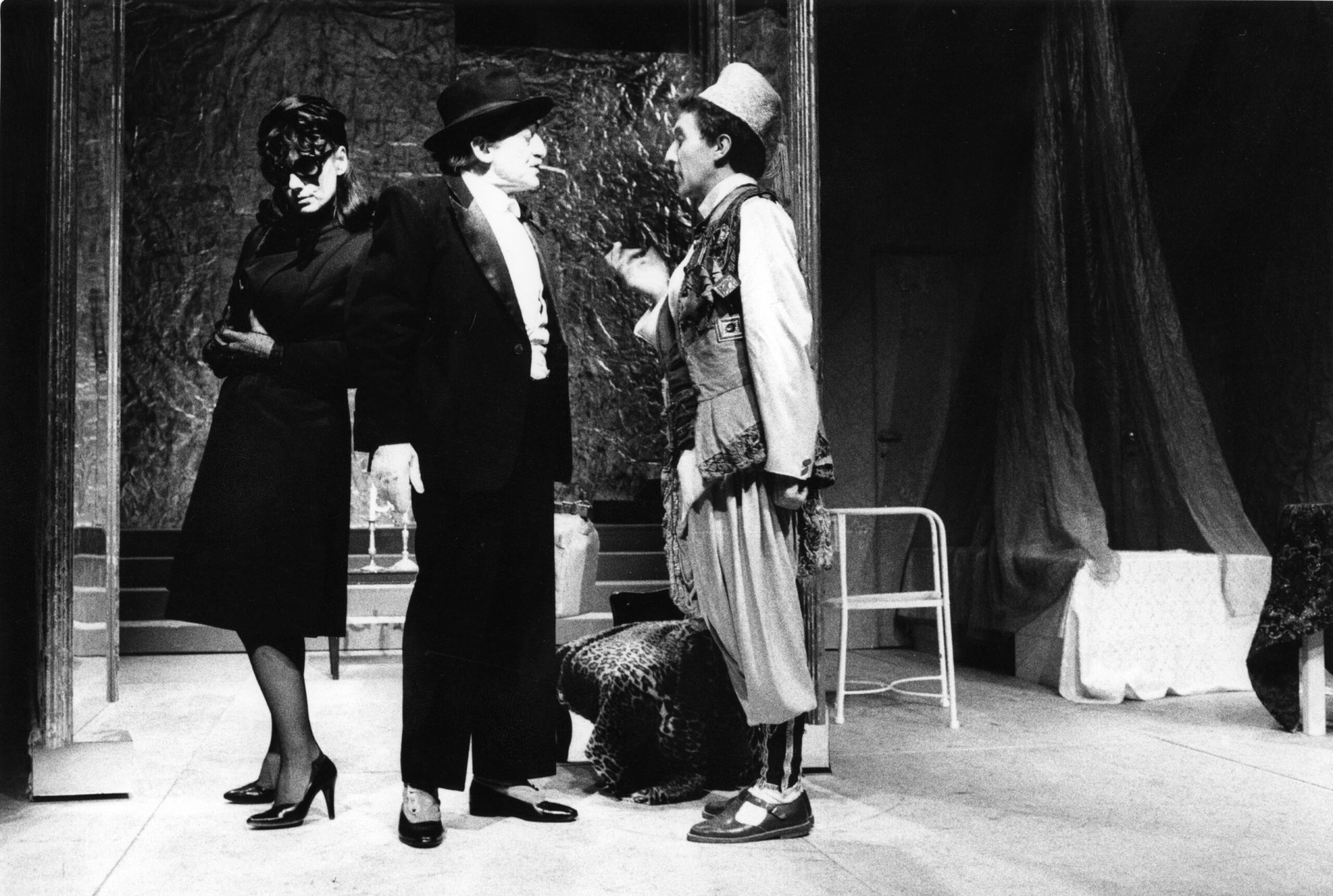 In tutti e due i generi di teatro, l’azione è sottomessa alla volontà solo degli dei. Il cambio di scena a vista in modo imprevedibile prima dell’intervallo, intende essere un omaggio a quel meccanismo che Feydeau, in precisi dettagli, descrive nelle didascalie di tutte le sue commedie (e qui abbiamo cercato di essere più fanatici di lui) e nello stesso tempo è il piacere di verificare le potenzialità di quei pochi metri quadrati che sono l’assoluto del teatro: dai mobili usciranno i letti, i tavolini dell’albergo etc. etc.: è la finzione del teatro, la verità del palcoscenico. I costumi vogliono rispecchiare un oggi reinventato umoristicamente, un oggi teatrale che permetta di spingere a fondo, senza perdere la misura il giudizio che si vuole dare.