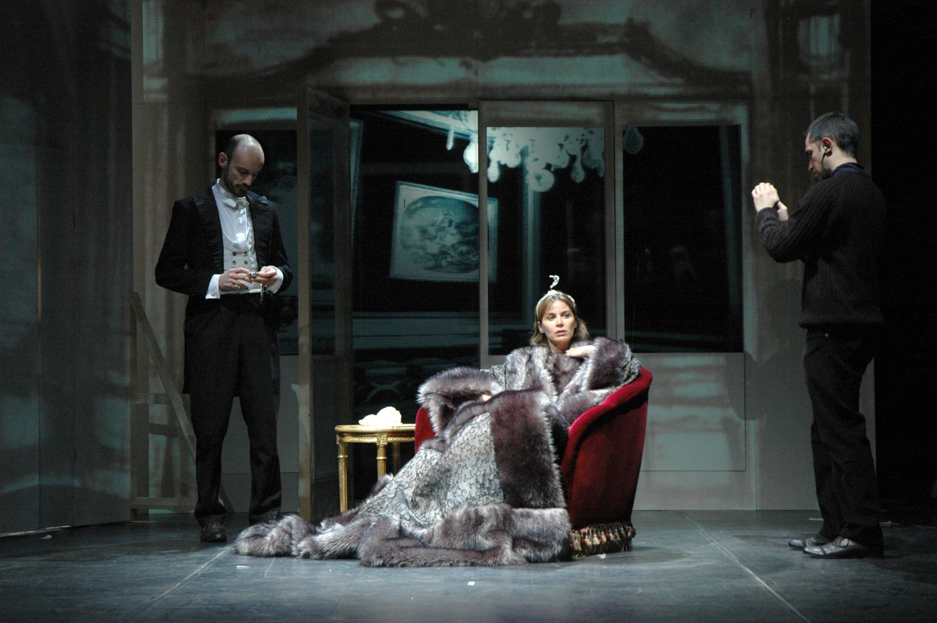 Il timore è di spiegare troppo: ci sono delle telecamere, c’è un regista che dice di voler riprendere un’immagine di Lulù, c’è l‘uso delle nuove tecnologie … Si vorrebbe che tutto questo, nello spettacolo potesse sembrare naturale. Quando uno cammina sul filo, a cinquanta metri da terra, non vediamo la fatica e il lavoro che ha fatto, semplicemente vediamo qualcuno che cammina su un filo. Il laboratorio della Rai ha permesso di capire come utilizzare i mezzi televisivi, quale macchina mettere in piedi. Ci sono, nello spettacolo, tracce di naturalismo che non andavano forzate e stravolte. È delicatissimo, perché poi ci si deve dimenticare del regista, dei giochi, delle telecamere, per entrare nei sentimenti. È un po’ il meccanismo di Questa sera si recita a soggetto. Pirandello smantella, smantella, smantella; poi quando arriva Mommina, la sua scena ci fa piangere. È questo uno stratagemma per lasciare che alcune scene rimangano fresche nei sentimenti e nel drammatico. Non è tutto drammatico, non è tutto impastato nel drammone del 900. È un’impaginazione, un impianto che permette, ad alcune scene, di essere più emozionanti. Scardinando ciò che risulta superato, si prepara l’arrivo delle emozioni in modo che i sentimenti emergano quando devono emergere, fino a far piangere.