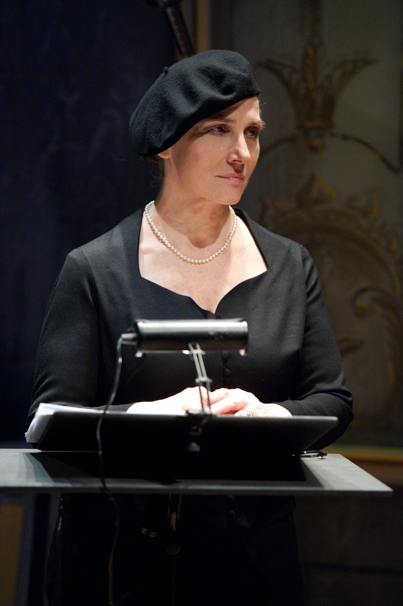 Andrée Ruth Shammah porta in scena questa non facile piéce cercando e trovando profondamente una strada lontana dal naturalismo per fare emergere i molti significati del testo. Crea così un’atmosfera di lucido ragionamento nella quale le attrici, dichiaratamente tali, si accostano ai leggii per recitare la loro parte, scambiandosela anche, mantenendo vivo però il senso critico di donne al cospetto di altre donne, diversissime tra loro e da loro. Ivana Monti, bravissima a sottolineare i piani di critica, e la puntigliosa Laura Pasetti nella bella scena di Gianmaurizio Fercioni, una biblioteca aperta sul nulla, entrano con bravura nel gioco dei più piani e riescono appieno a far sentire come la politica e il suo potere possano cinicamente impossessarsi delle vite non solo dei politici, ma anche di chi sta loro accanto e come possa essere arduo e problematico per una donna non voler rinunciare a se stessa.