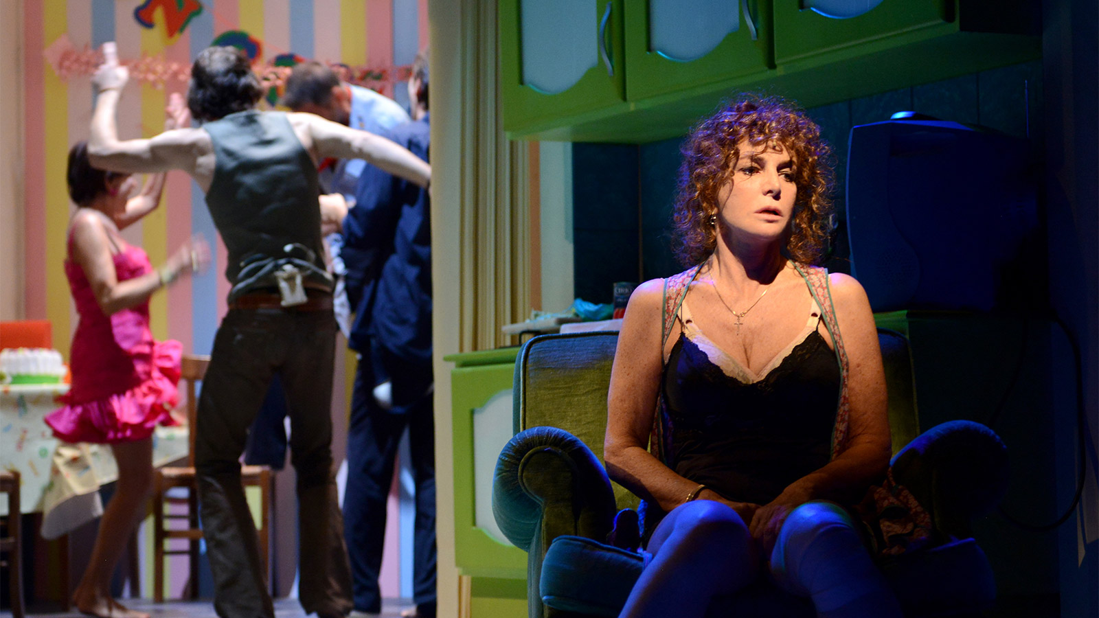 Una lunga, folle nottata: questo serve e questo basta ad Adriana, madre incinta, sola e oppressa, per decidere di fuggire dalla prigione della sua esistenza quando una sera, strane presenze, temute e desiderate da troppo tempo, si introducono in casa sua. Improvvisamente riaffiorano senza una logica i fantasmi del passato, le proiezioni del suo inconscio, i sogni e i desideri repressi. Con una scrittura leggera quanto amara, fra dramma, la commedia e thriller, lo spettacolo dal ritmo incalzante, forte e denso di emozioni, rappresenta a pieno il suo autore. La De Sio torna per la terza volta in vent’anni a vestire i panni di Adriana, sicuramente tra i personaggi più belli e complessi di Ruccello e ad un decennio di distanza dall’ultima volta, dona alla protagonista uno spessore ancora più incisivo.