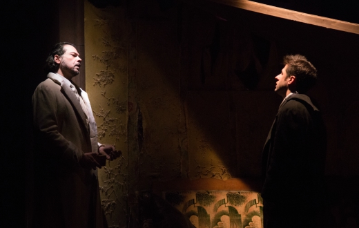 La regia, quasi caravaggiesca per il sapiente uso delle luci, fa muovere i personaggi tra luce e ombra. È in questa che essi, a tratti, scompaiono, come inghiottiti nella notte del dubbio e delle tenebre. Lo spettacolo è un meccanismo ad orologeria molto ben congegnato. Bravi tutti gli attori.