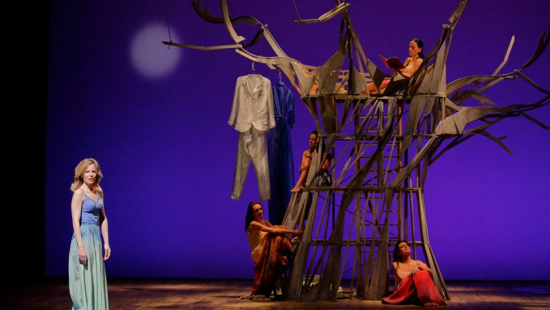Sul palco, accanto a Sonia Bergamasco, le Faraualla – splendido quartetto di cantanti attrici – e il musicista performer Rodolfo Rossi.