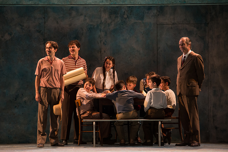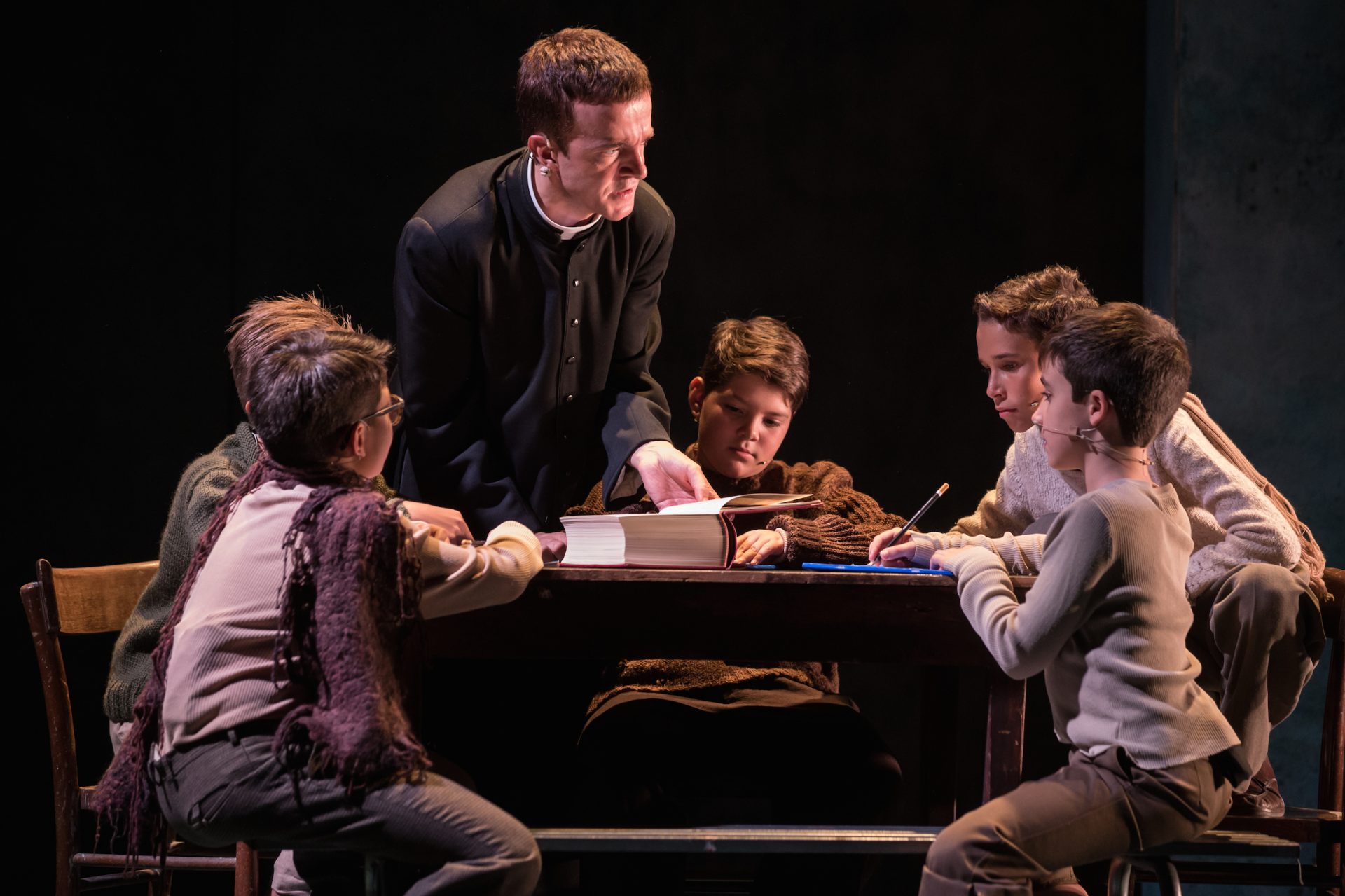 È uno spettacolo di grande respiro, scritto (a quattro mani assieme a Laura Perini) da Leo Muscato che ne è anche regista. Del testo originale, solo la metà va in scena, con gli episodi che riguardano la parrocchia di Calenzano e quella di Barbiana: l’insieme potrebbe essere destinato a una narrazione televisiva. E non c’è da scandalizzarsi: anche questa anticipazione da palcoscenico è dichiaratamente pop, nel senso originale di «popolare», perché vuol far conoscere al più ampio pubblico un padre semisconosciuto e per tanto tempo osteggiato della nostra cultura. Un contenitore austero (canonica, chiesa, casa del popolo) che cambia a vista, mentre il bravissimo Alex Cendron, nei panni sempre talari del protagonista, affronta le tante stazioni di questa umanissima quanto rigorosa via crucis.