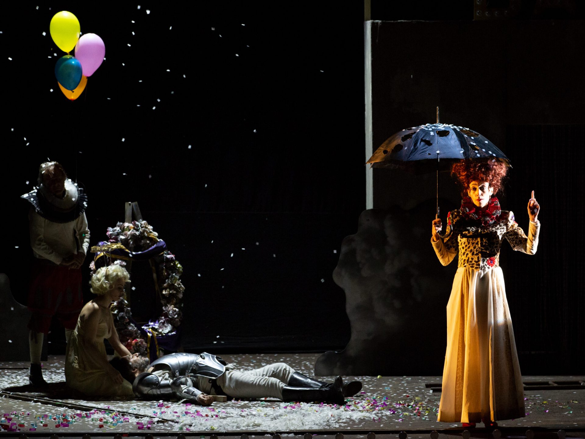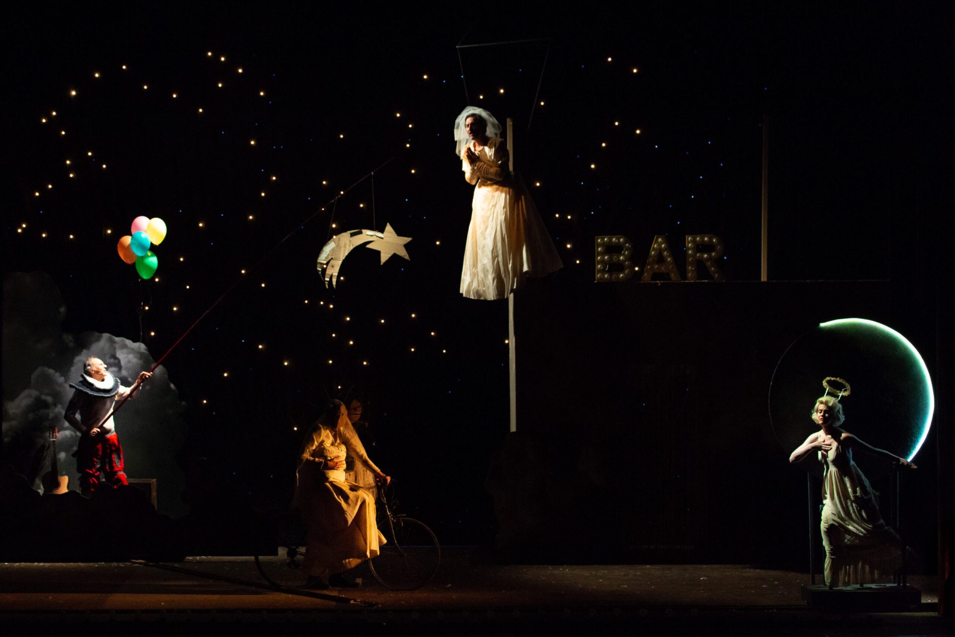 Timi con lingua da poeta giunge al cuore dell’uomo che cerca il tesoro lontano, e il nemico oltre la selva, per scoprire che tutto, come svela sul palcoscenico, è già nel suo cuore. Peso linguistico e di pensiero che esiste, recitazione forte, voci che parlano teatralmente e corpi che agiscono drammaticamente. Drammaturgia autentica e animante, teatro che svela, tutto scorre, appare e svanisce, ma qualcosa resta: “Gli angeli non conoscono la morte”.
