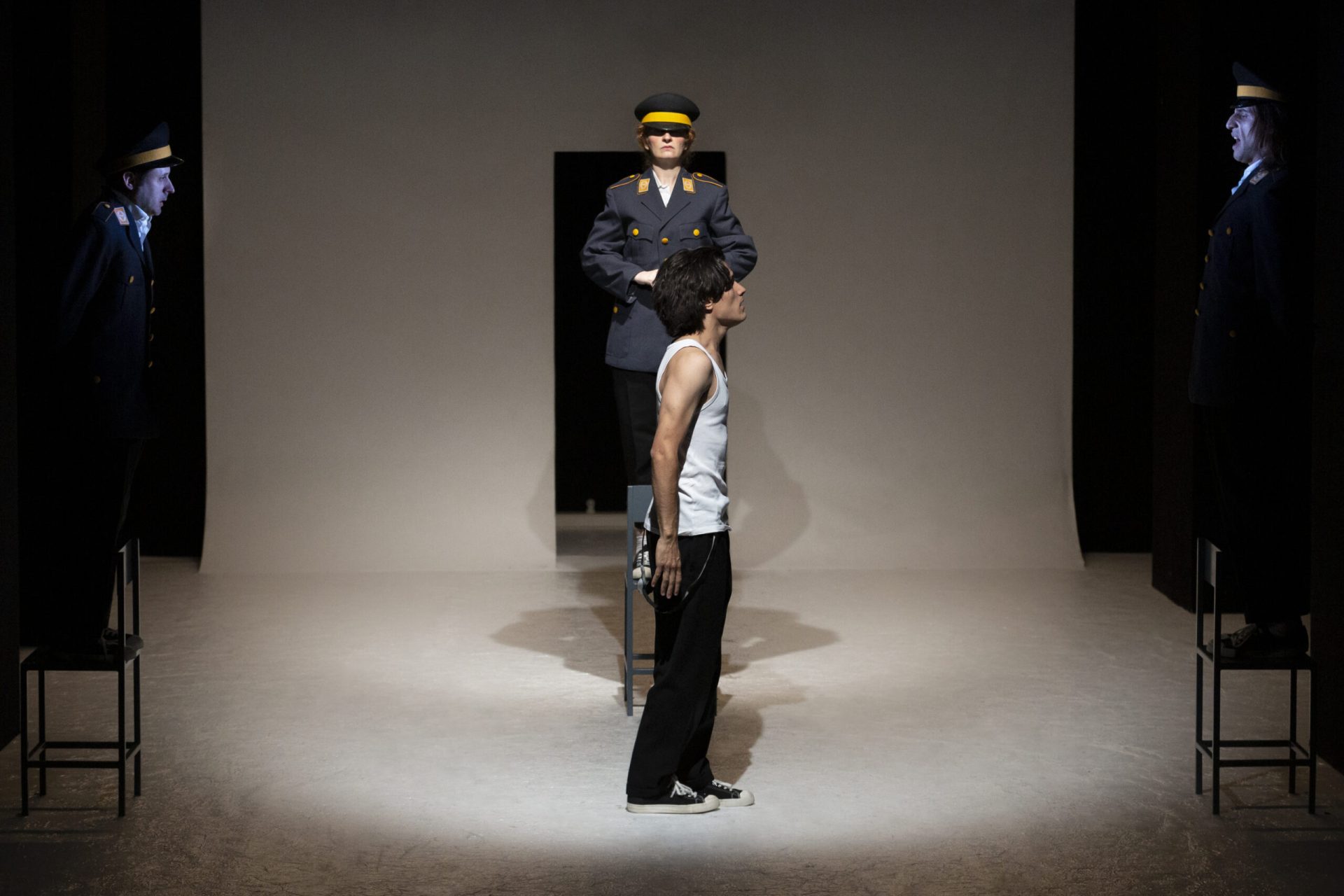 L'umanità viene messa a nudo in modo straniante, dando vita ad un componimento assurdo, simbolico e potente che arriva direttamente allo spettatore.
