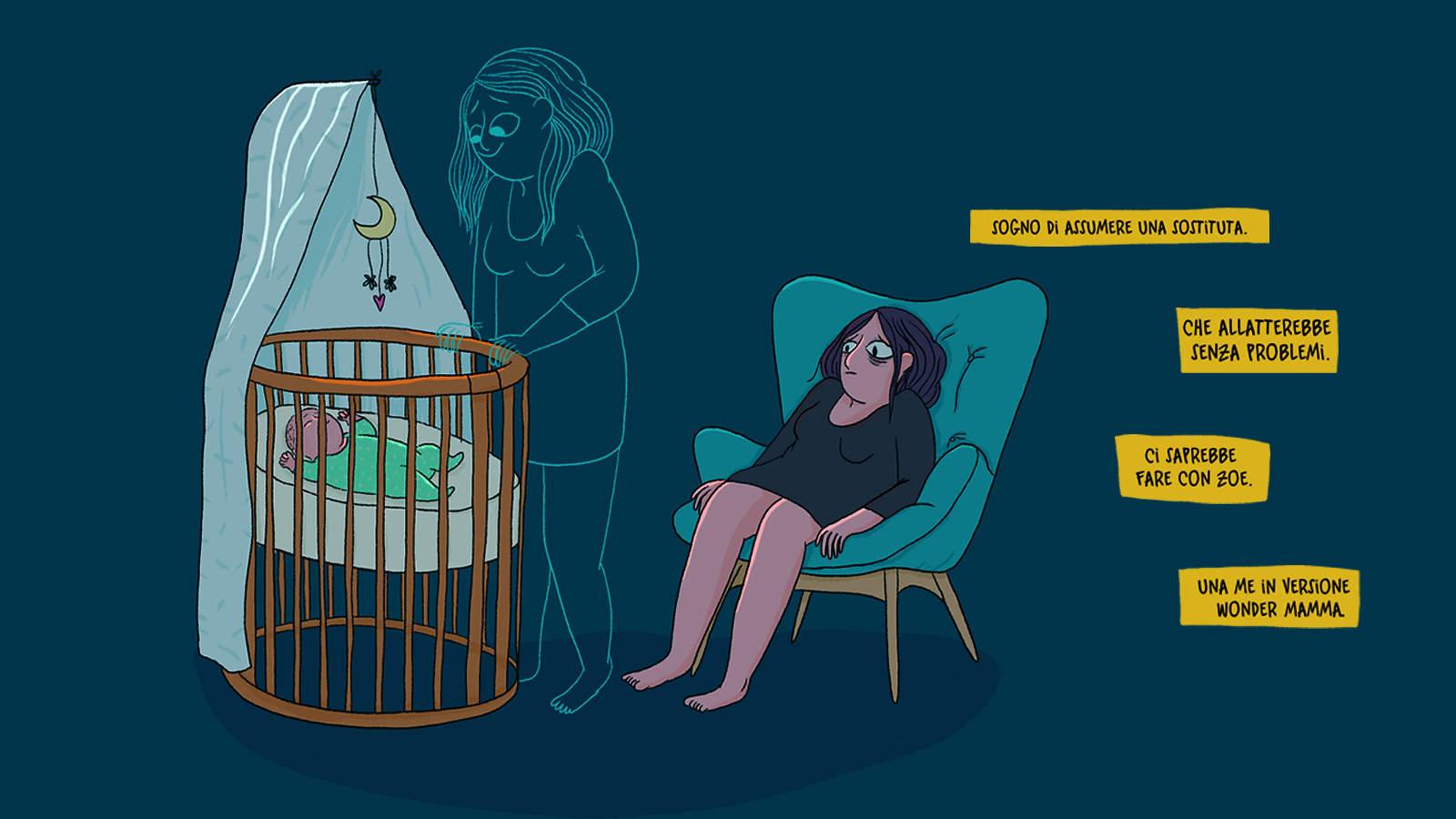 La sostituta nasce dalle esperienze delle due autrici, Sophie e Mathou, e dalla necessità di parlare in modo semplice e disincantato delle difficoltà della maternità. L’edizione italiana è curata dalla dottoressa Chiara Gregori, ginecologa e sessuologa che da oltre vent’anni accompagna le neomamme in tutte le fasi della gravidanza pre e post parto.