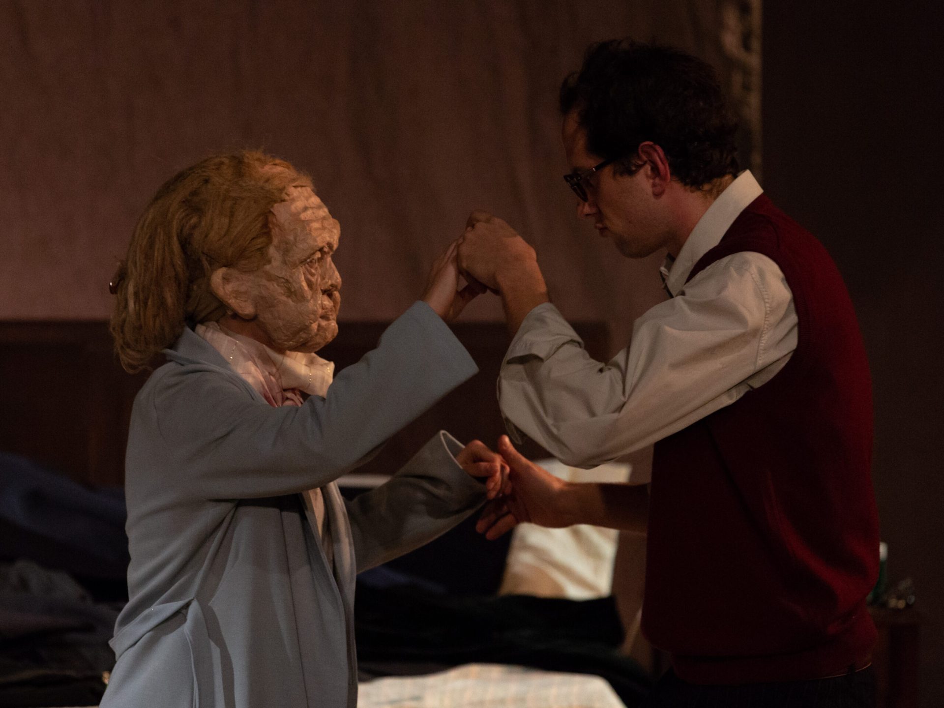 Una raffinata macchina delle emozioni intorno a un letto, senza parole, solo col linguaggio del corpo dell’attore e della maschera.
