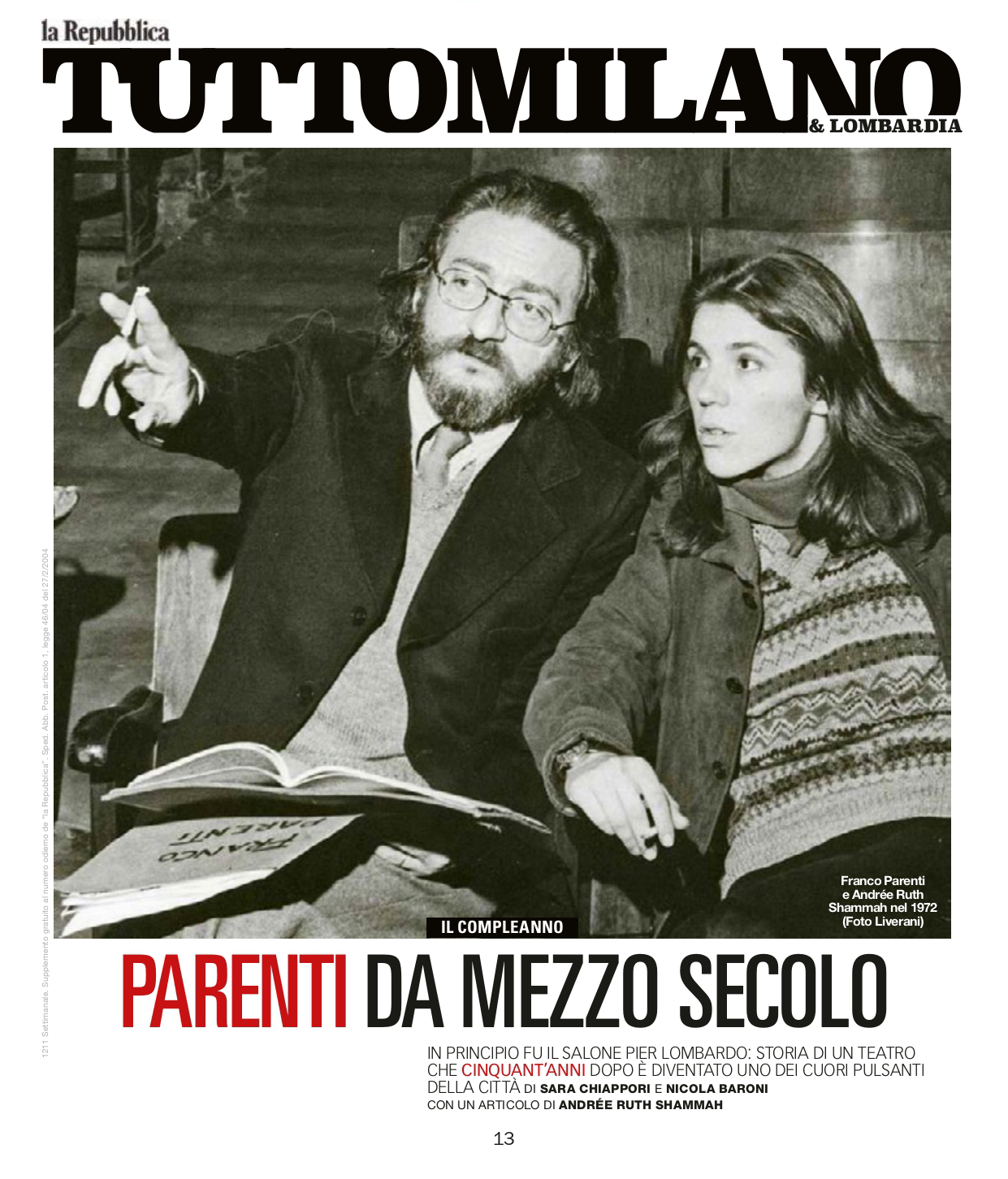 Inaugurazione dei festeggiamenti per il Cinquantesimo del Teatro Franco Parenti. Ideato da Monica Maimone e dedicato ad Andrée Ruth Shammah.