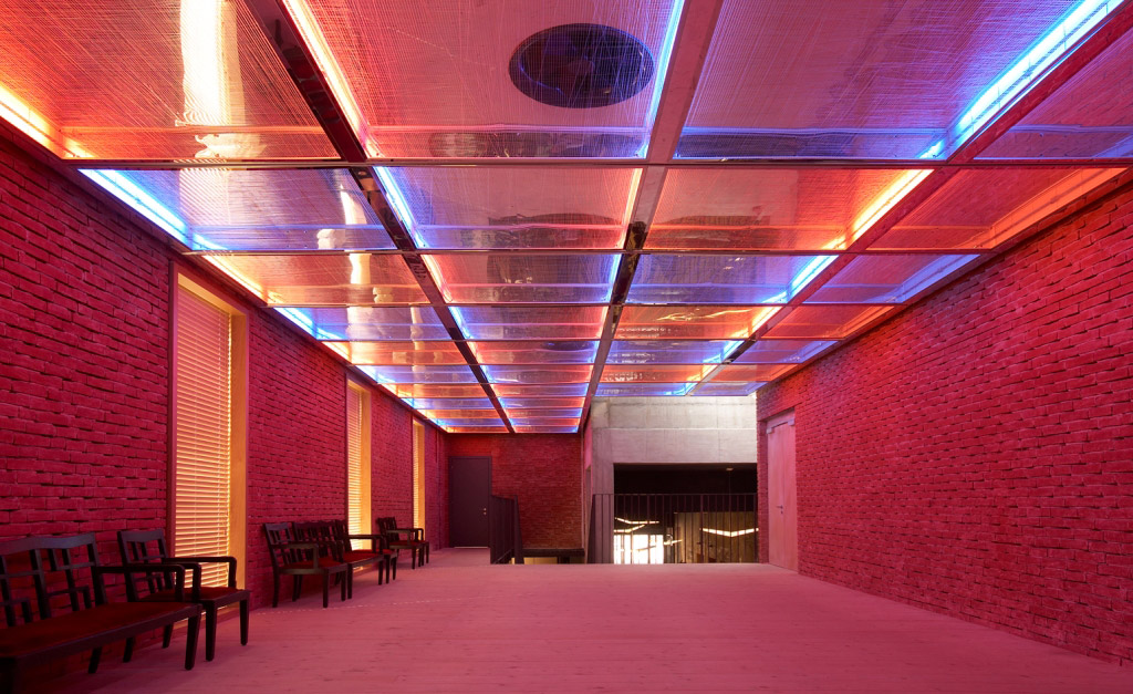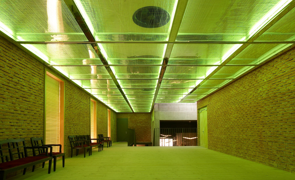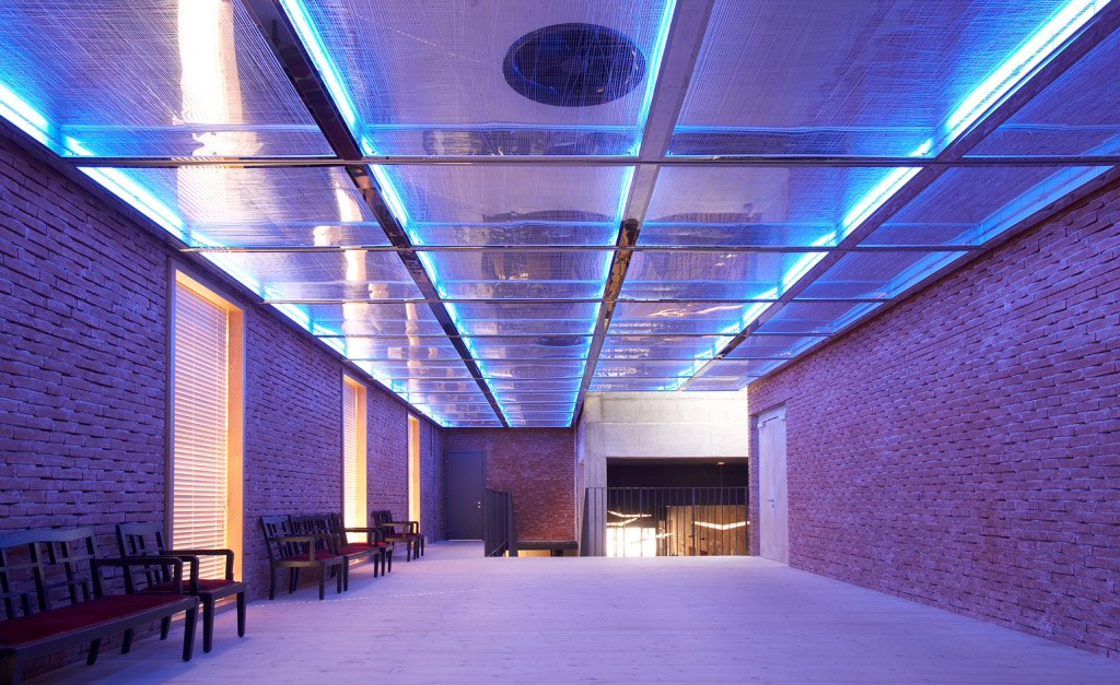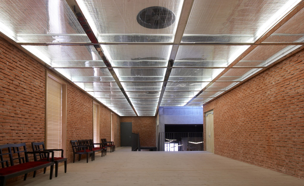 È uno spazio aperto, in continuità con la Sala Grande, polifunzionale e quindi fruibile come palcoscenico, luogo di lavoro, di incontro e di ristoro.