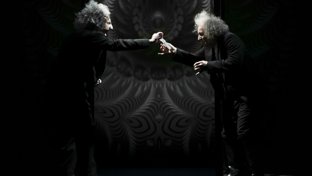Alla fine dello spettacolo sembra emergere la soluzione all’enigma, che comporta però una fine tragica per il protagonista. Lo scontro con il sosia goffo e tormentato rappresenta in realtà l’incontro con l’io interiore del protagonista che si rivela aggressivo e che lo perseguita, portandolo alla scissione con la sua parte più intima. Questa figura riflette unicamente la proiezione di un io autonomo rispetto a quello del protagonista.