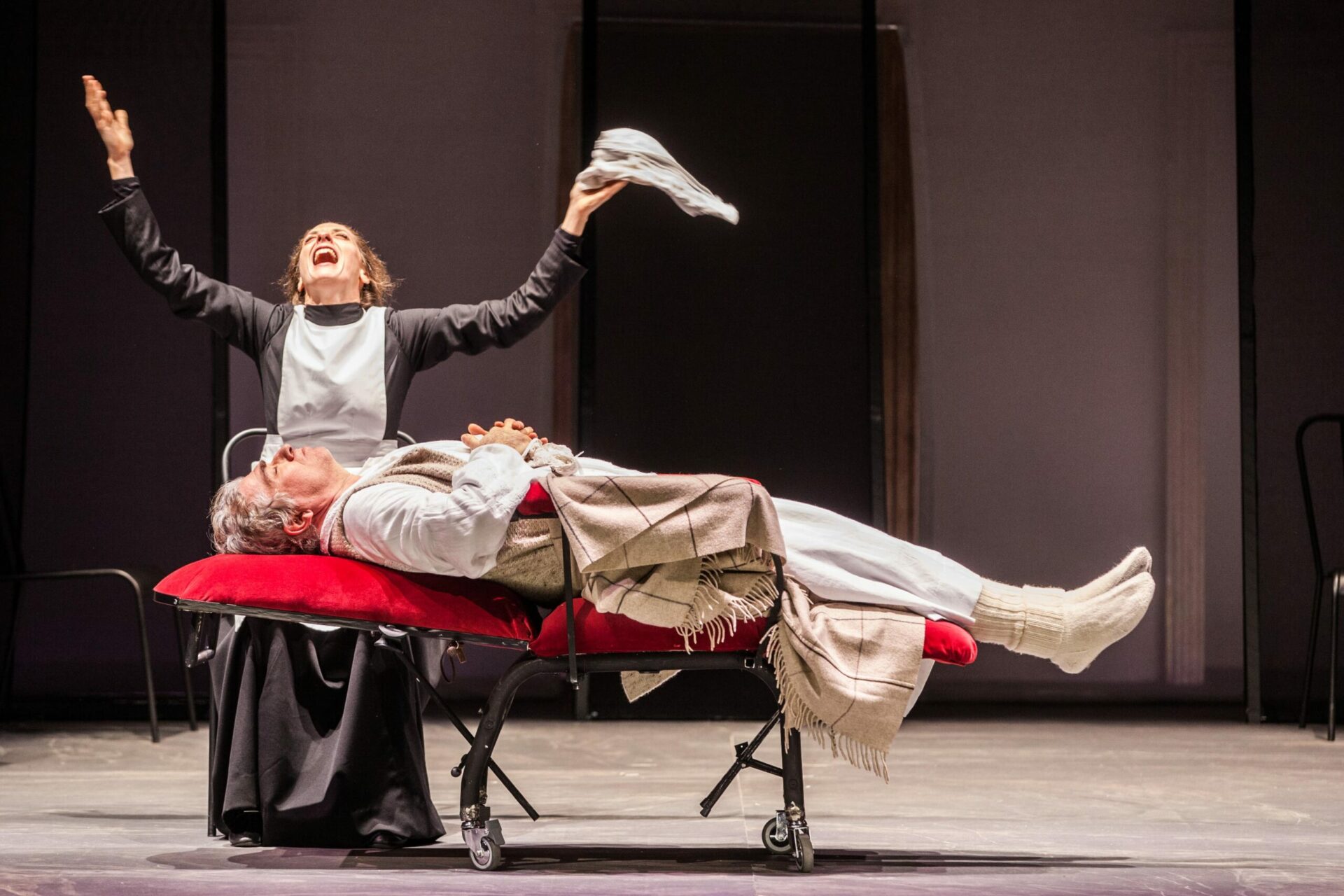 Accanto a lui Anna Della Rosa, nel ruolo della domestica intrigante, una perfetta coppia di serva e padrone, a volte bonariamente sboccata, a volte lucidamente beckettiana. La messinscena, (…) è imbastita con eleganza e sofisticheria, grazie anche alle scene e ai costumi di Gianmaurizio Fercioni, tra tulle e velluti, preziose mantelle e lampadari luccicanti. Affianca i due bravi protagonisti un ottimo cast (…) ben affiatato, dal perfetto tempismo comico, ma mai gigionesco, nonostante le risate del pubblico e gli applausi a scena aperta.