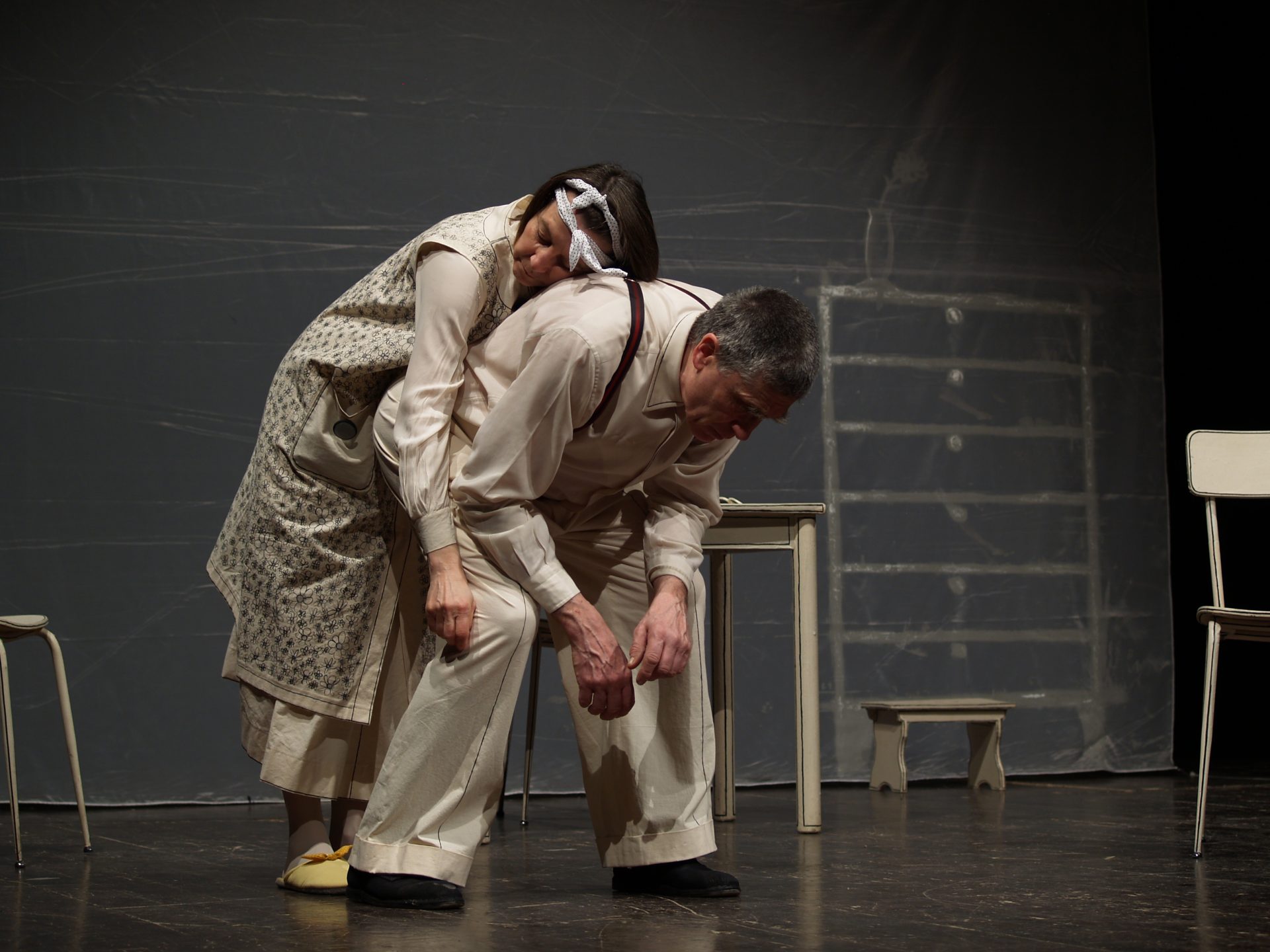 Due Nonnetti vivono la loro giornata. Piccoli eventi trasformano la quotidianità in avventure a sorpresa. Ospiti attesi e inattesi, che fanno irruzione in questo mondo fragile e incantatore come un carillon, interrompono quindi la magia e i Nonnetti si coalizzano per affrontare il mondo esterno nella sottile battaglia di soprusi l’uno contro l’altro. La condizione di anzianità aggiunge però la libertà di espressione, la sicurezza del “se non ora quando” e i due, come discoli infanti, ben consapevoli, si trovano ad inventare scherzi contro il mondo che amano. Lo spettacolo nasce dal desiderio di esprimere la forza delle persone anziane. L’osservazione condivisa nei laboratori teatrali con le persone della terza età e lo studio delle relazioni e dei ritmi che si creano in un momento fragile e decisivo della vita, hanno stimolato la compagnia a lavorare senza l’utilizzo delle parole, cercando nel movimento la forza comunicativa. La sfida della ricerca è mantenere il sottile filo teso e coerente tra azione e invenzione.