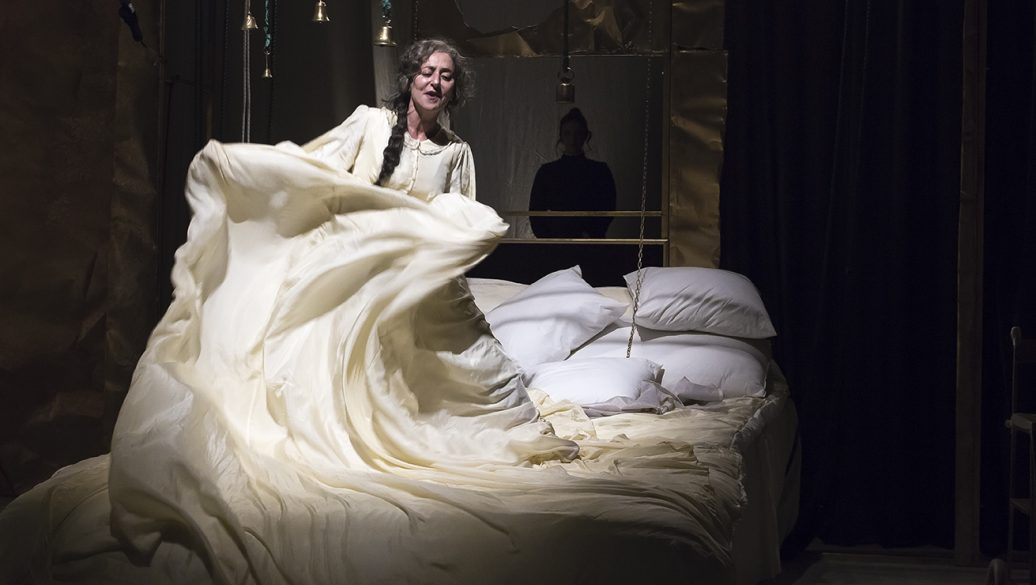 1870, pochi anni dopo l’Unità d’Italia. In una villa alle pendici del Vesuvio vivono in esilio volontario la baronessa Donna Clotilde, chiusa nella sua ipocondria e nostalgica del Regno delle Due Sicilie, e la cugina Gesualda, povera e zitella, segretamente innamorata del vizioso curato, Don Catellino. L’arrivo del bellissimo Ferdinando sconvolgerà l’equilibrio. Forse il testo più compiuto e complesso di Annibale Ruccello (1956-1986).